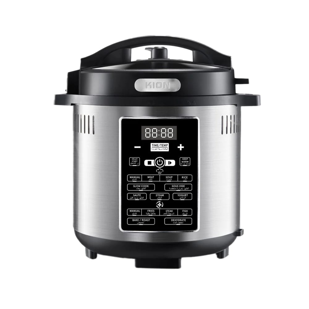 حالة المنتج : جديد العلامة التجارية : كيون السعة: 6 لتر. الطاقة: 1500 واط. المميزات: شاشة رقمية مع خيارات طهي متعددة، ووعاء طهي غير لاصق، ونظام أمان متطور. الوظائف: يجمع بين وظائف قدر الضغط والقلي الهوائي في جهاز واحد، مما يقلل وقت الطهي بنسبة 70%. يتميز بقدرته العالية على الطهي.