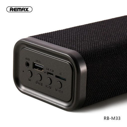 Remax RB-M33 bluetooth speaker is a hot new product that has recently appeared and is being sought by audio enthusiasts. It can be said, Remax M33 is a product possessing simple design lines but exuding elegance. Remax RB-M33 is a wireless Bluetooth speaker with a long rectangular shape like a "giant Chocolate candy" bar. The surface of the product is covered with a matte blend fabric that incorporates modern treatment technology for a stylish and pleasant feel to the touch.