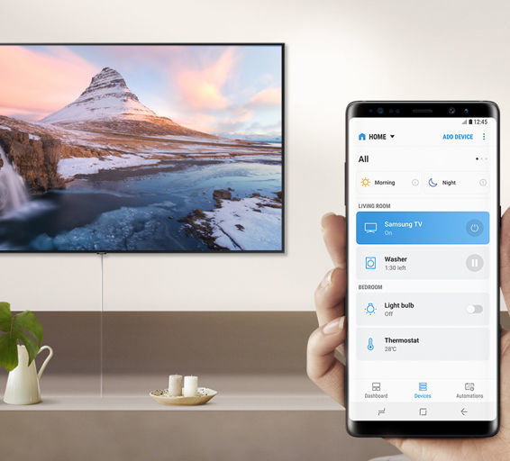 Your Samsung Smart TV, along with SmartThings,² is designed to connect to a wide range of connected devices across your home. This ecosystem of products work together, wirelessly, to automate your home and make life a little bit easier