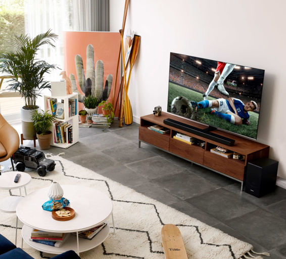 Intuitive control Samsung Smart TVs provide easy connections for your home theater through OneRemote³ and Auto Detect. In addition, Bixby virtual assistant⁴ streamlines voice commands straight to your TV, so you can setup your TV and find content quickly.