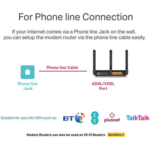TP-Link AC1600 Wireless Dual Band Gigabit VDSL/ADSL Modem Router for Phone Line Connections (BT Infinity, TalkTalk, EE ) 2 USB, 2.0